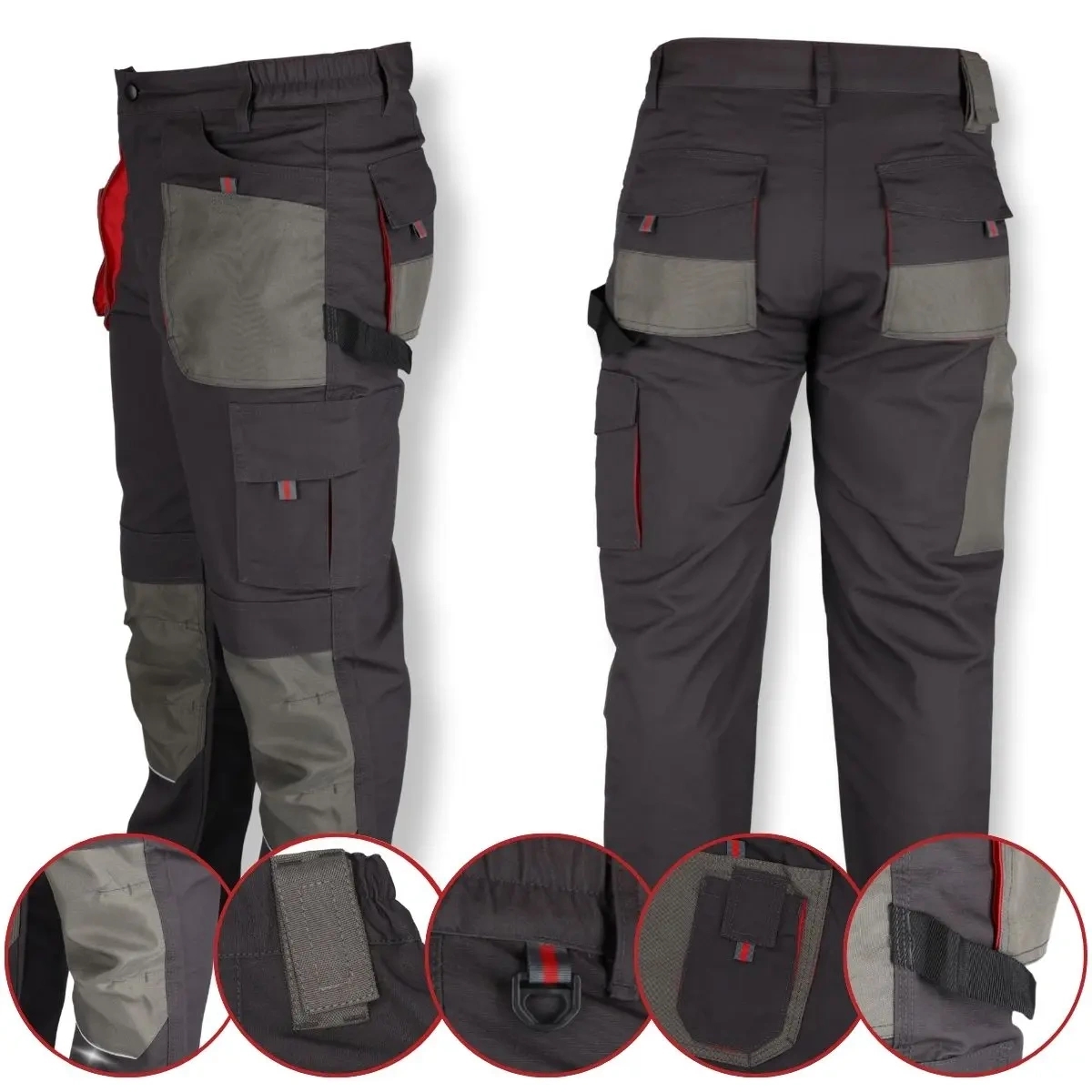 Materiāla sastāvs: Materiāls: 65% poliestera/35% kokvilnas; 265 g/m² gramatūra; EN ISO 13688:2013 standarts; 9 kabatas, tostarp 6 ar Velcro; riņķis atslēgām; cilpa āmuriņam; pastiprinātas kabatas ceļgalu spilventiņiem.