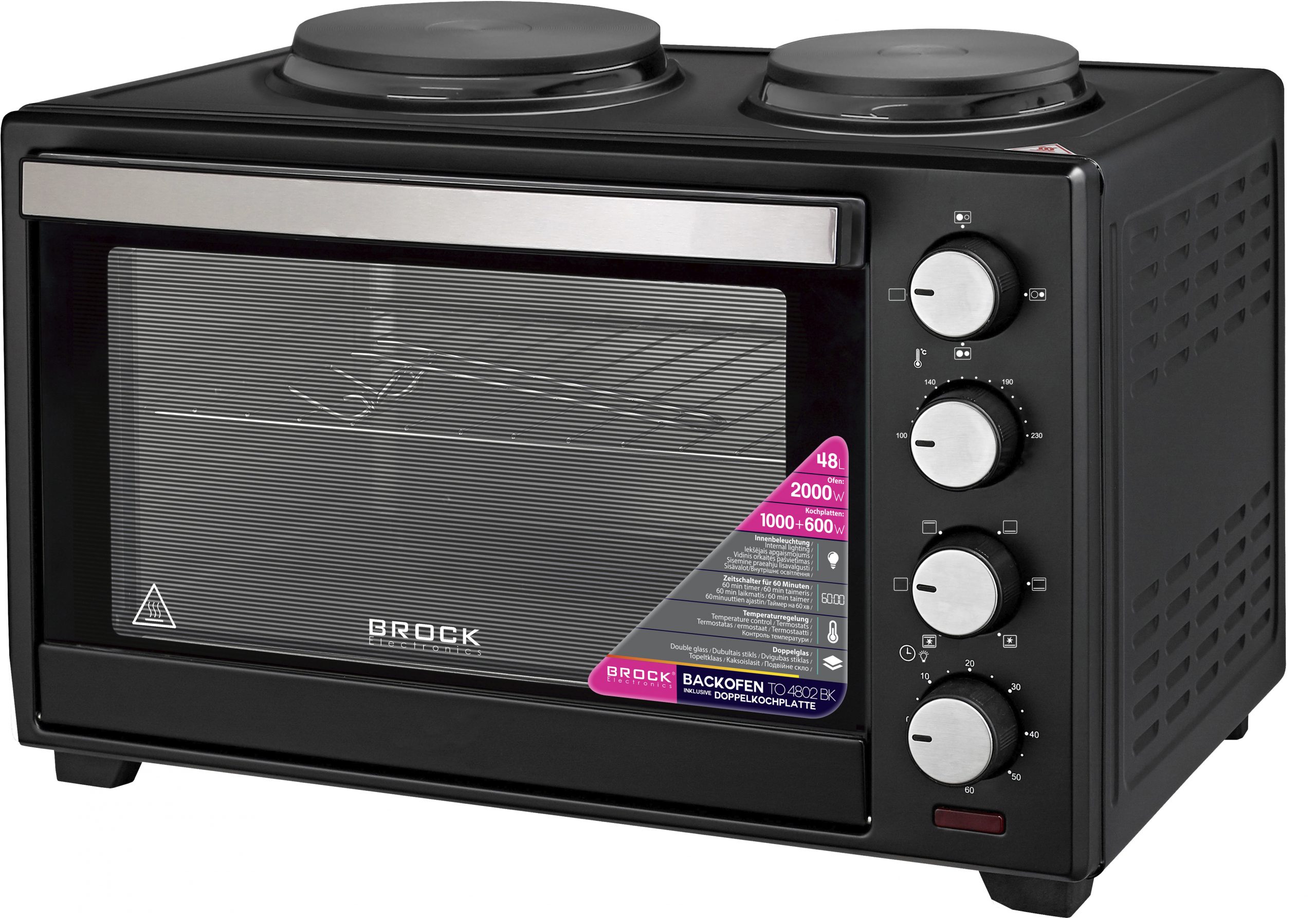 Cepeškrāsns ar kovekciju un divām sildvirsmām BROCK TO 4802 BK 48L 2000W