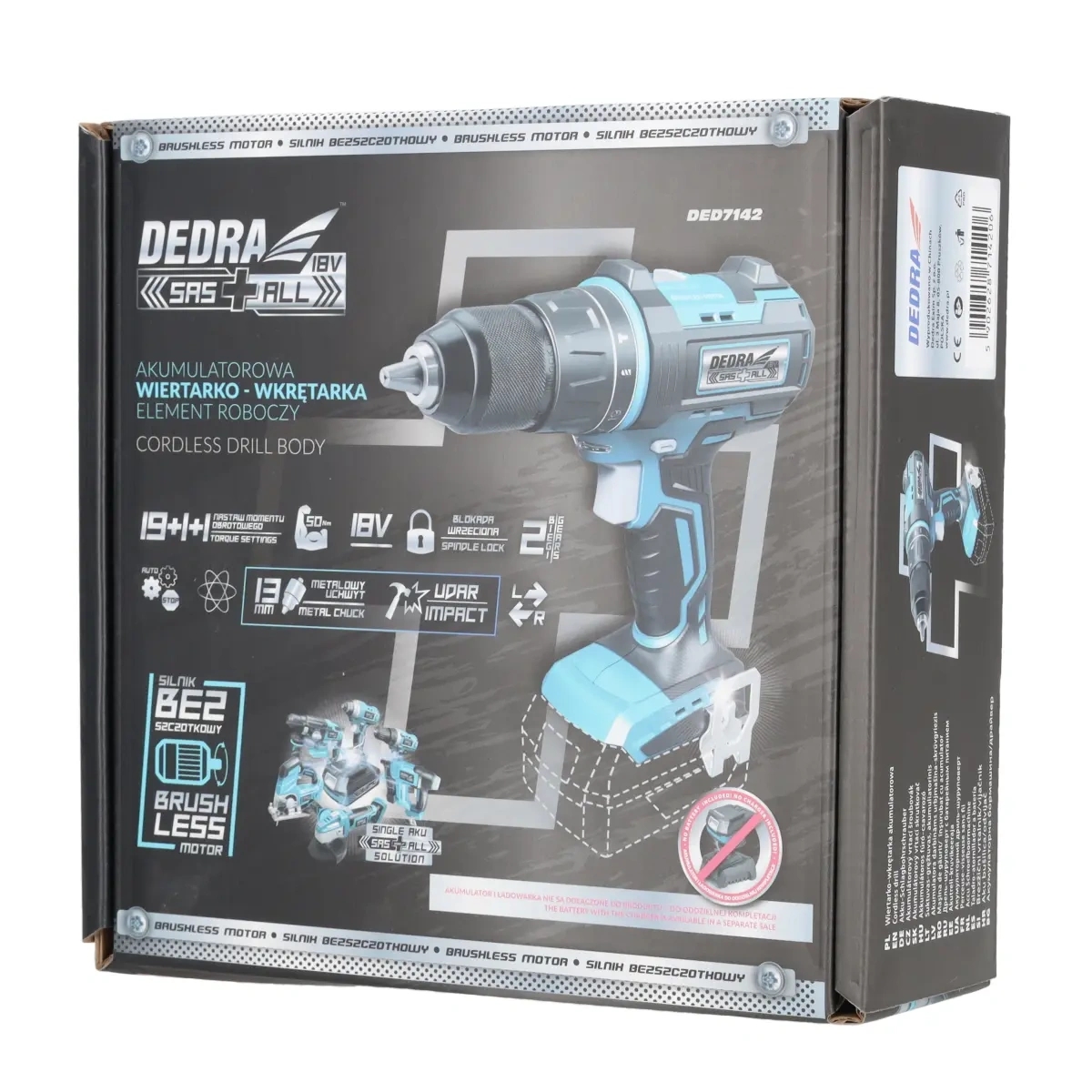 Darbinama urbjmašina-skruvgriezis 18V bezsukas,13mm, trieciena funkcija SAS+ALL (DED7142)