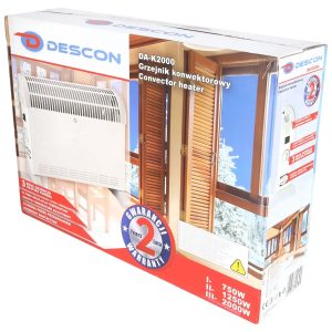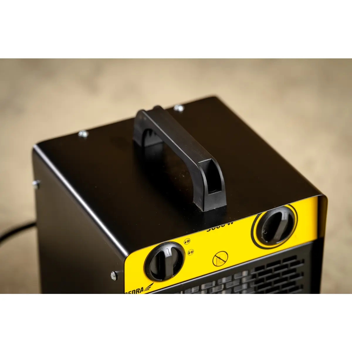 Jauda: 1000 W/2000 W; gaisa plūsma 148 m³/h; 230 V izeja; keramiskais sildelements; aizsardzība pret pārkaršanu; termostats; 3 darbības režīmi: vēss/ silts/ karsts.