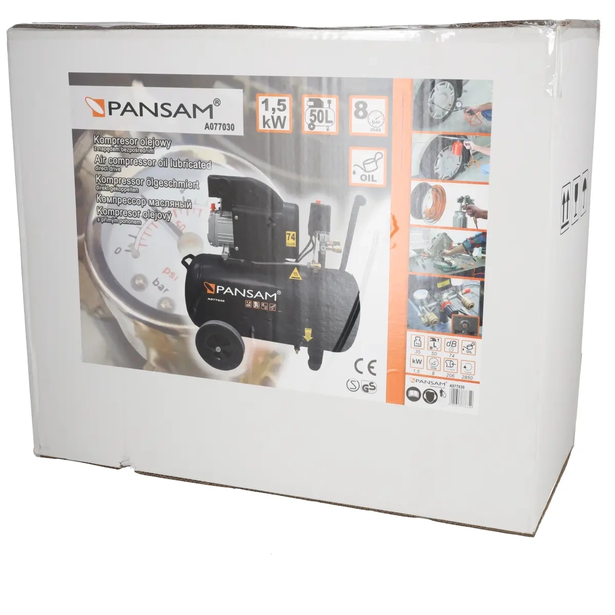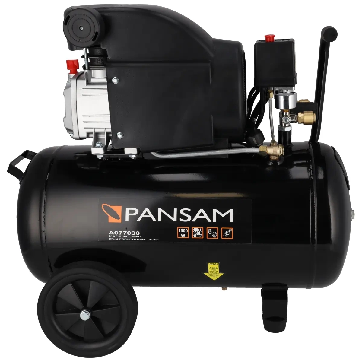 Jauda: 1500 W; cilindru skaits: 1; maks. izplūdes spiediens: 8 bar; gaisa plūsma: max: 200 l/min; gaisa tvertnes tilpums: 200 l/min: 50 l; divi manometri; divas pieslēguma pieslēgvietas.