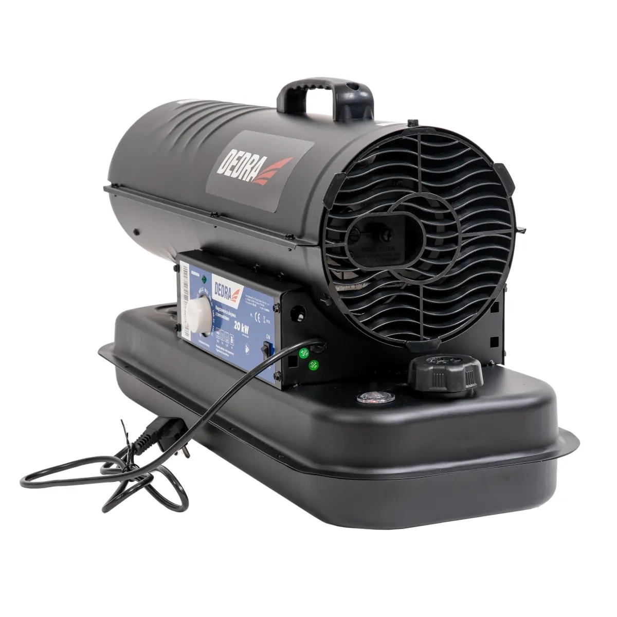 Jauda: 20kW; enerģijas klase: A; degvielas patēriņš: 1,65kg/h; Gaisa plūsma 365m3/h; 19l tvertne; temperatūras kontrole; degviela: dīzeļdegviela/vieglā dīzeļdegviela