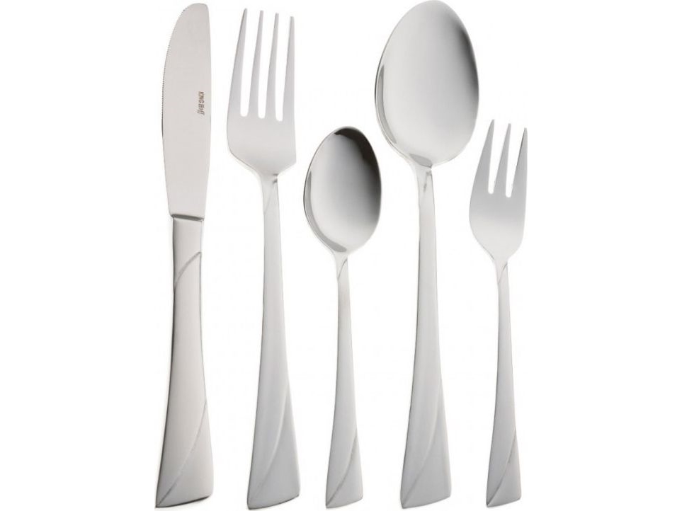 galda naži – 6 gab Galda dakšiņas – 6 gab Galda karotes – 6 gab Tējas karotes – 6 gab Tortes karotes – 6 gab.