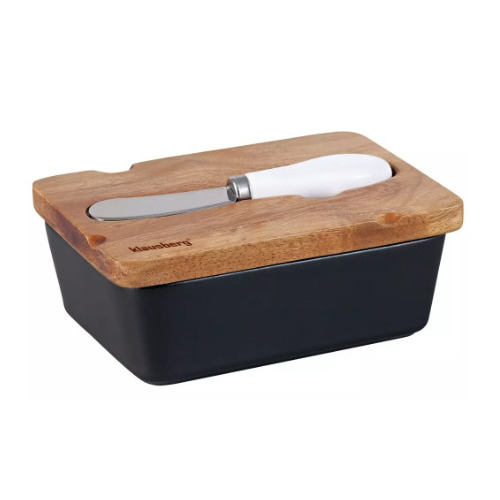 Keramikas sviesta trauks, melns, ar akācijas koka vāku un tauku nazi, Klausberg KB 7784