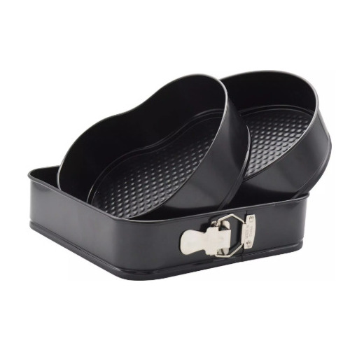 Klausberg melnās kūku formas, 3 gab. komplekts, KB 7184. Kvadrātveida kūkas forma 26 x 26 x 6,8 cm. Sirdsveida kūkas forma 21 x 21 x 6,8 cm. Apaļa kūkas forma 24 x 24 x 6,8 cm. Nepiedegošs iekšējais pārklājums. Nepiedegošais ārējais pārklājums nodrošina lielisku siltuma sadali labākai cepšanai. Nepiedegošo pārklājumu ir ļoti viegli tīrīt.
