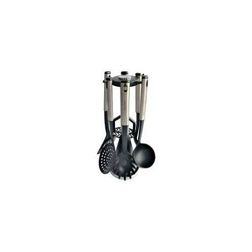 7 gab komplekts – smalcinātājs, siets ar rievām, kauss, karote, spageti serveris, abs plastmasas statīvs