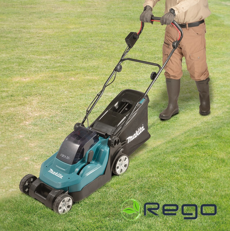 Makita DLM382PT2 Akumulatora zāles pļaujmašīna 2×5.0Ah, DC18RD 38cm.