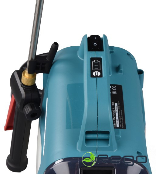 Dārza miglotājs, kas darbojas ar 12V akumulatoru.