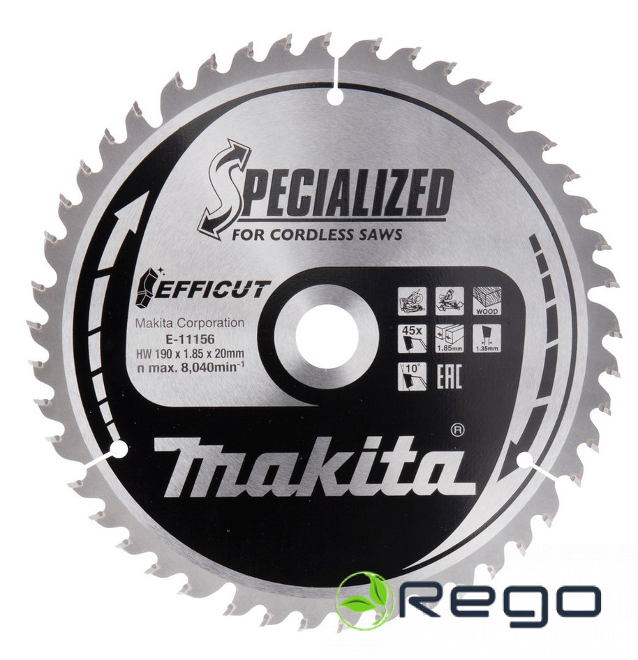 Makita Zāģripa kokam 190×1.85x20mm 10° 45z EFFICUT (E-11156)