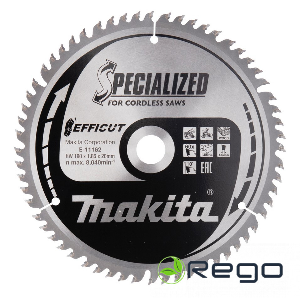 Makita Zāģripa kokam 190×1.85x20mm 10° 60z EFFICUT (E-11162)