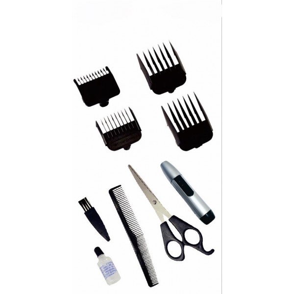 Matu griešanas mašīna Rosberg 5R51810MNB, 10W, zila. Augstas kvalitātes nerūsējošā tērauda asmeņi. Regulējams asmeņu vadības slēdzis. Ergonomisks dizains ar gumijotu pārklājumu. Ļoti klusa un jaudīga darbība. Komplektā ietilpst deguna trimmeris. Pilns piederumu komplekts: 4 uzgaļi (3, 6, 9 un 12 mm), šķēres, matu ķemme, tīrīšanas birstīte, eļļa un asmeņu aizsargs. Mašīnas barošanas avots: 220–240V, 50–60Hz. Jauda: 10W. Trimmera barošana: viena AA baterija (nav iekļauta).