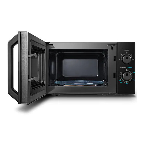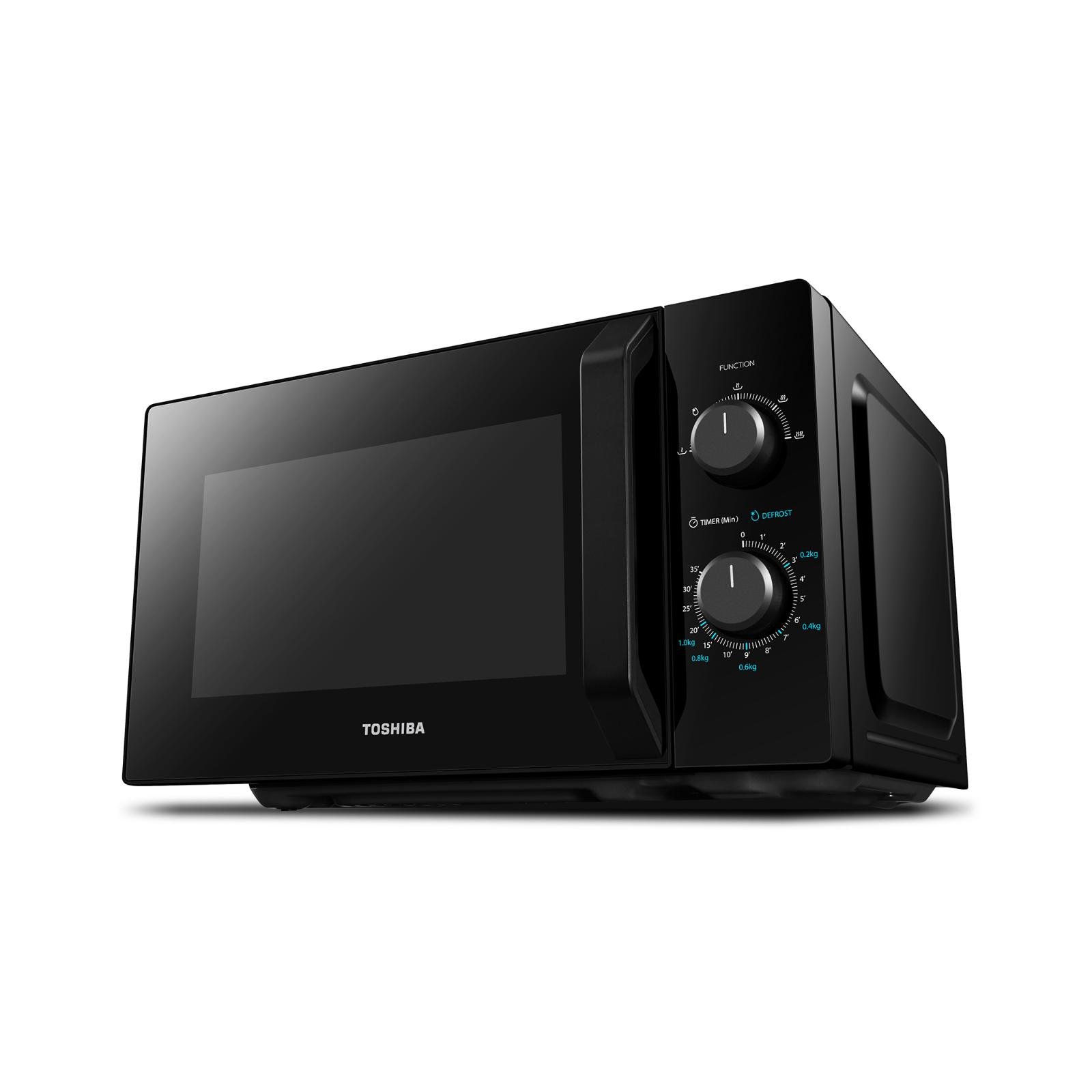 Mikroviļņu krāsns Toshiba MW2 MM20PBK, 20 L, ar mehānisko vadību, 800 W jaudu, 4 jaudas līmeņiem un LED apgaismojumu, melnā krāsā. Tā ir izstrādāta, lai saīsinātu gatavošanas laiku, nezaudējot veiktspēju: 450 g gaļas tā atkausē 6 minūtēs un 30 sekundēs, bet 450 g ēdiena uzsilda 4 minūtēs un 30 sekundēs. Ierīcei ir elegants dizains, atkausēšanas programma, intuitīvs vadības panelis, izturīgas eņģes, neslīdošas kājiņas un ūdensizturīga, viegli tīrāma iekšējā siena. Izmēri: 44 × 33,4 × 25,9 cm.