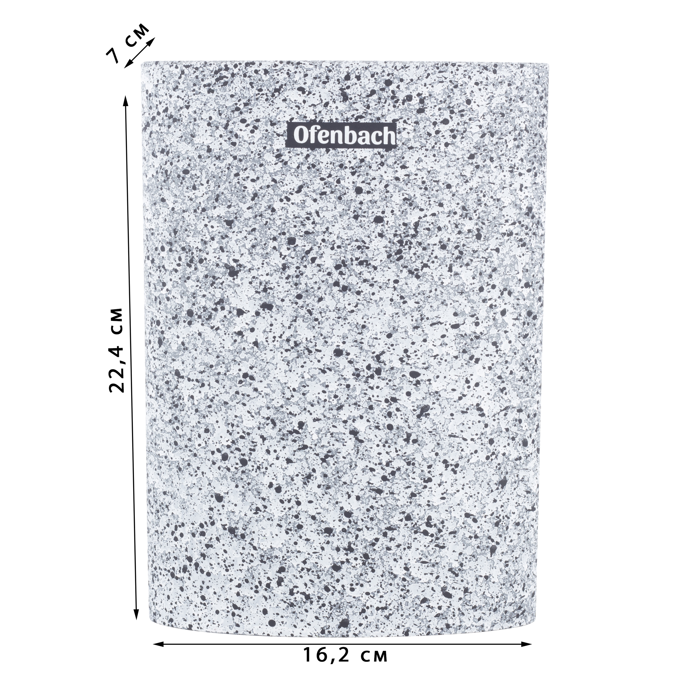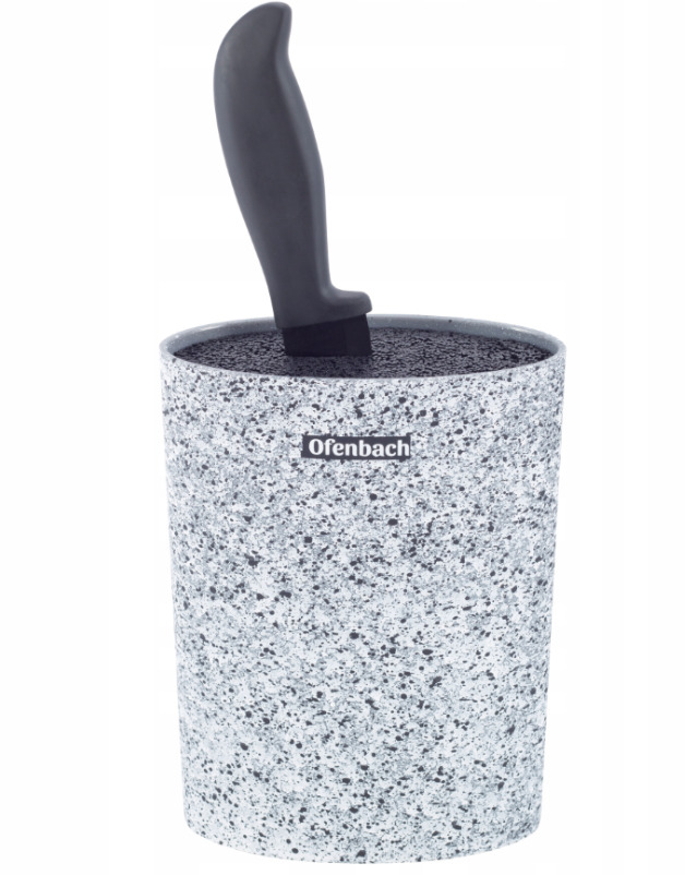 Nažu statīvs 16×7.2×22.5cm, 100210, Ofenbach. Izgatavots no augstas kvalitātes plastmasas ar “soft-touch” pārklājumu. Pildījums sastāv no izņemamiem plastmasas stieņiem. Izmēri: 16×7.2×22.5cm. Pieejams pelēkā krāsā ar granīta dekoru.