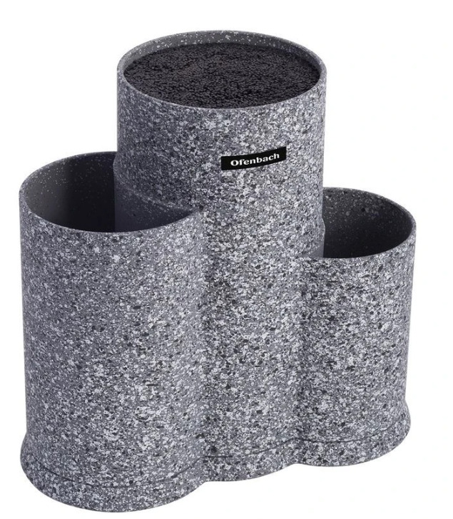 Nažu statīvs 23×12.3×22.2cm, 100212, Ofenbach. Izgatavots no augstas kvalitātes plastmasas ar “soft-touch” pārklājumu. Pildījums sastāv no izņemamiem plastmasas stieņiem. Izmēri: 23×12.3×22.2cm. Pieejams pelēkā krāsā ar granīta dekoru.