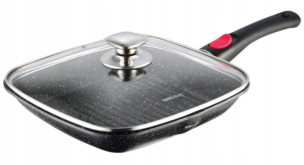 Panna ar marmorētu pārklājumu, melna, 28x28x4,5cm Kinghoff. – Nelīpošs marmorēts pārklājums veselīgam ēdiena pagatavošanai – Noņemams rokturis, lai ietaupītu vietu un atvieglotu uzglabāšanu – Piemērots indukcijas virtuvēm – Ieteicams vienmēr izmantot plastmasas traukus – Uzkarst vienmērīgi un nerūsē – Ērti lietojams un viegli mazgājams – Var droši mazgāt trauku mazgājamajās mašīnās.
