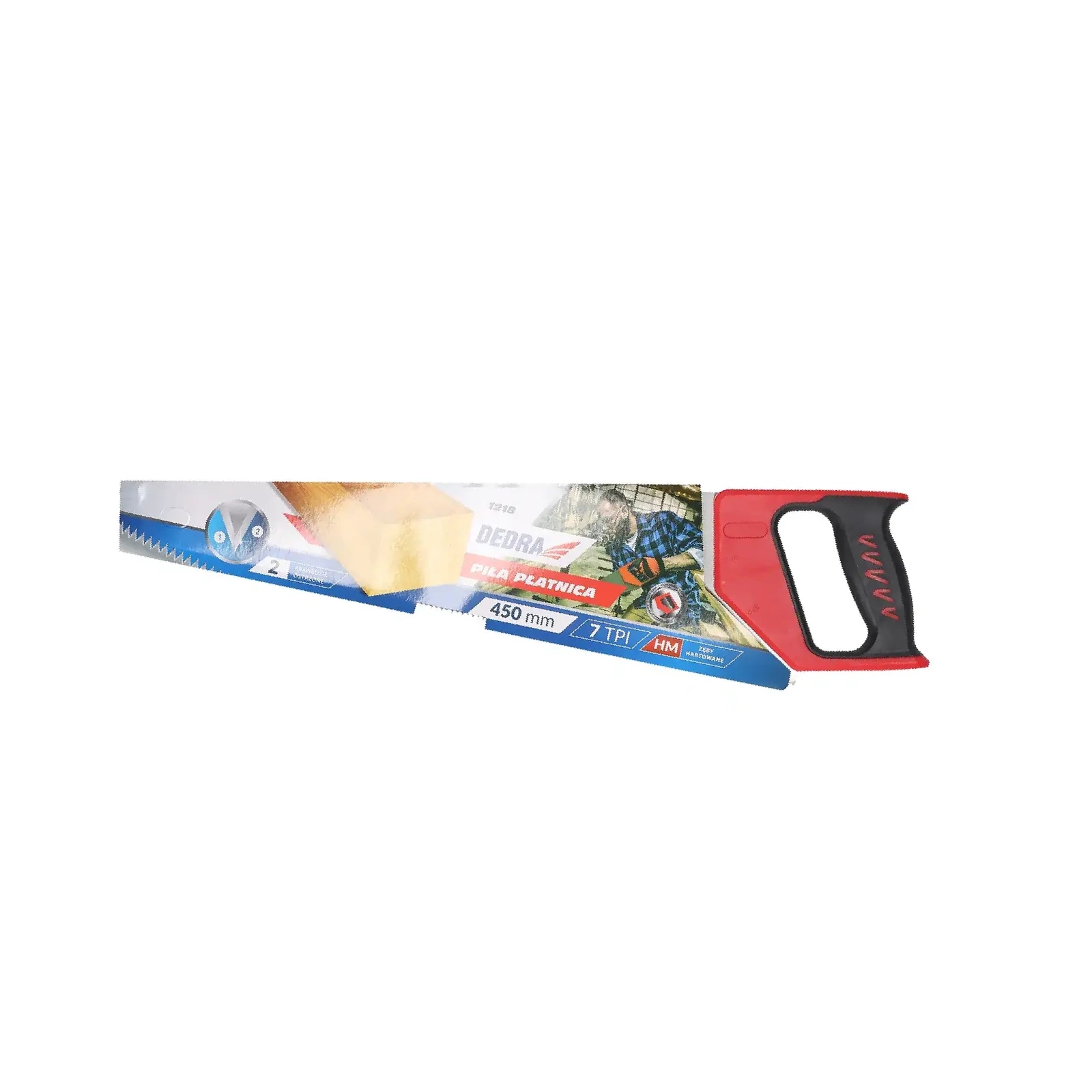 Darba garums: 450 mm, zobi: 2 malas asināti un rūdīti, 7 TPI, divu materiālu rokturis, profilēts