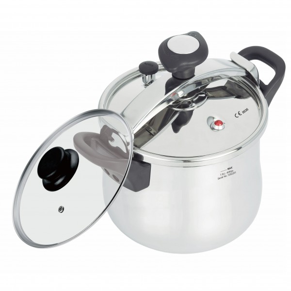 Spiediena katls Rosberg R51311A9, 9 L, indukcijai, nerūsējošais tērauds. Tilpums: 9 litri. Iekšējais izmērs/diametrs: 26 cm, iekšējais augstums: 18,1 cm. Speciāls daudzslāņu termiskais dibens optimālai siltuma vadītspējai. Piemērots visu veidu plītīm: gāzes, stikla keramikas, elektriskajām, halogēna un indukcijas. Ergonomiski bakelīta rokturi roku aizsardzībai un ērtai lietošanai. Īpaši gluda virsma novērš ēdiena un tauku uzkrāšanos, nodrošinot vieglu tīrīšanu. Normālais gatavošanas spiediens: 60 kPa. Spiediena izplūdes vārsts: max 70–90 kPa. Speciāls vāks ar rotējošu rokturi papildu drošībai. Silikona blīvgredzens. Komplektā papildu stikla vāks ar bakelīta rokturi un silikona blīvējumu. Var mazgāt trauku mazgājamajā mašīnā. Krāsa: sudraba.
