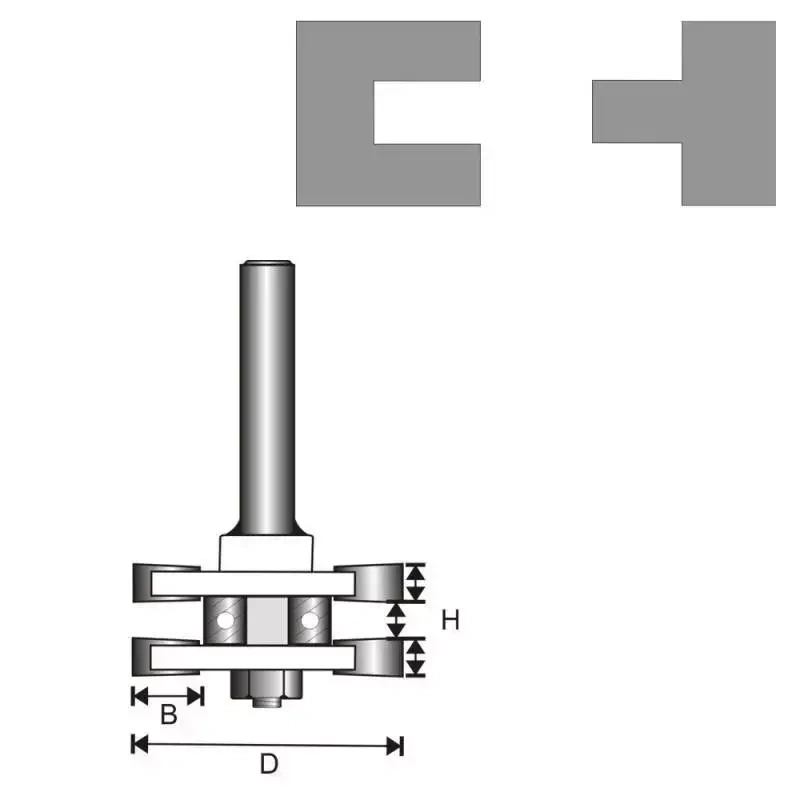 HSS tērauds, paredzētais pielietojums: koksnei un koksnes materiāliem, izmēri: T8, D41, H6,35, B9,5 mm.