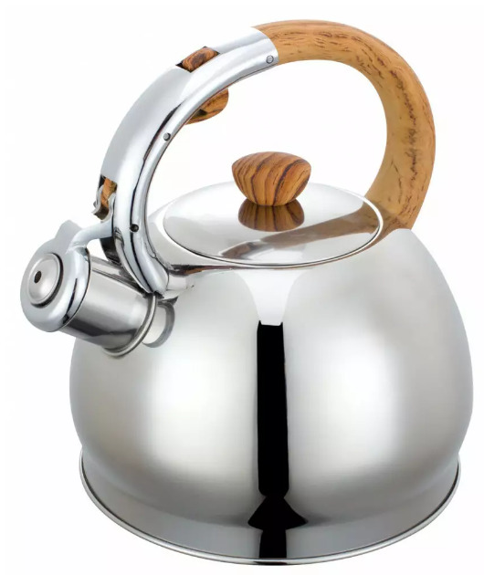 Tējkanna ar svilpi, 2L. Koka apdares rokturis Kinghoff KH 3782