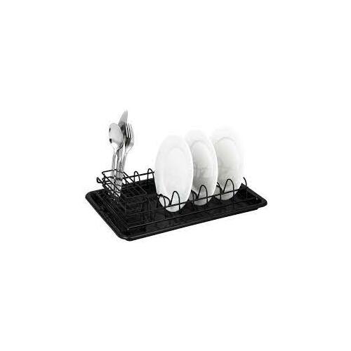 Trauku turētājs – metāla melns vadu trauku žāvētājs, 38 x 24 x 9,5 cm.