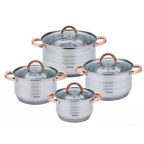 Virtuves trauku komplekts, Ø16/18/20/24cm, Klausberg tērauds. Izgatavots no augstas kvalitātes nerūsējošā tērauda. Daudzslāņu termo apakšdaļa, lai saglabātu siltumu. Ēdiens ātri uzsilst un uztur siltumu uz ilgu laiku. Piemērots visu veidu apkures avotiem: gāzes, elektrības, keramikas, stikla, halogēna, indukcijas degļiem. Karstumizturīgi rokturi. Viegli mazgājams. Drošs atomu trauku mazgājamajās mašīnās.