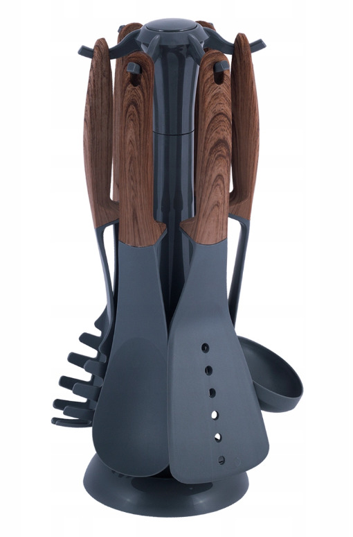 Virtuves piederumu komplekts, 7 gab., 5236, Kamille. Komplekts sastāv no 7 daļām: kauss, caurduršā karote, karote vārīšanai, karote makaroniem, lāpstiņa, lāpstiņa ar atverēm un statīvs. Materiāls: neilons. Var izmantot traukos ar jebkuru pārklājumu.