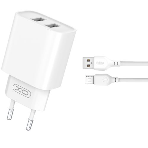 XO CE02C Mobilo telefonu lādētājs 2xUSB 2.1A + Micro USB kabelis 1m