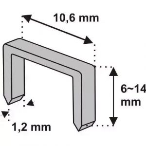 Nagu tips: D11; augstums: 6-14 mm; biezums: 1,2 mm; galvanizēts; iepakojumā: 1000 gab. Tips Skavas sērija DEDRA Numurs ir iekļauts 1000 Biezums [mm] 1.2 Augstums [mm] 10