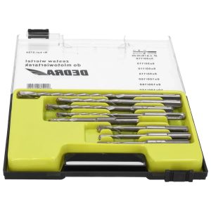 SDS+, 5,6x110mm, 8x110mm-2gab., 6;8;10x160mm, 10x210mm Materiāls Instrumentu tērauds + HM Tips Komplektā – SDS + betona urbji sērija DEDRA Numurs ir iekļauts 8 Urbja veids Betona urbis Urbja garums [mm] 110, 160, 210 Liktenis Betons, ķieģelis, akmens, šūnbetons Urbja diametrs [mm] 5, 6, 8, 10 Roktura veids SDS +